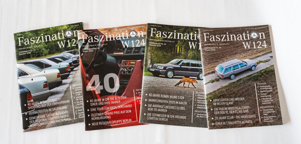 - Die jeweils aktuelle und auch ältere Ausgaben des W 124 Clubmagazins können über den Clubshop nachbestellt werden.