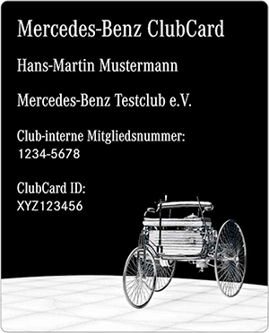 - Die digitale Mercedes‑Benz ClubCard kann von jedem Club-Mitglied in der Mercedes‑Benz ClubLounge heruntergeladen werden.