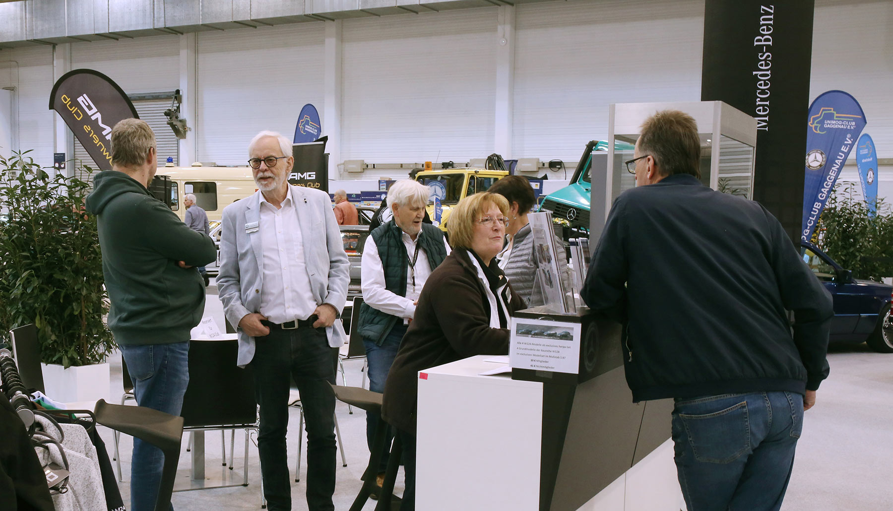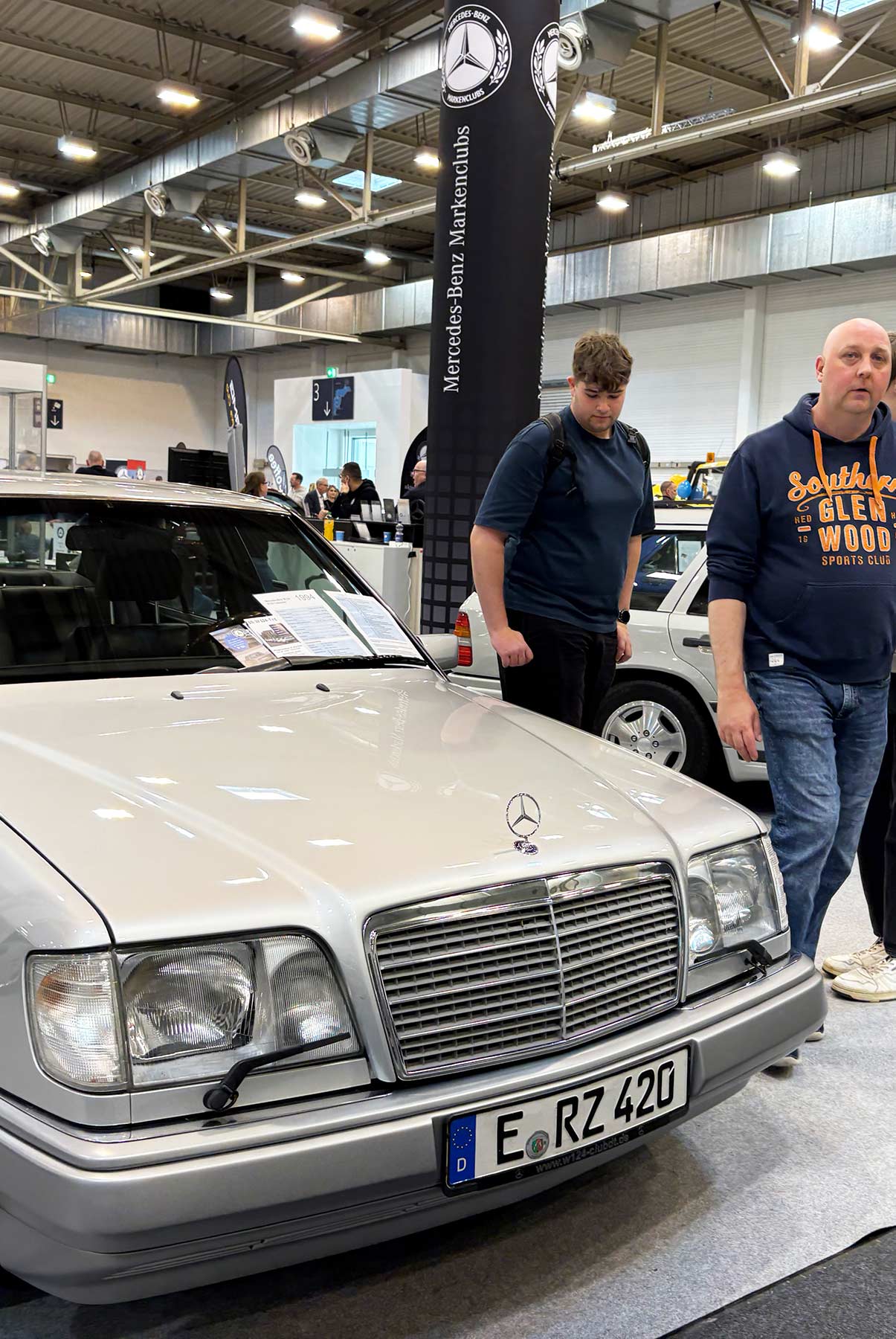 Unser Stand war, wie gewohnt, ein echter Blickfang, die drei ausgestellten Fahrzeuge, ein T-Modell, ein 400er und ein Cabrio, waren herausgeputzt und für jeden W 124-Liebhaber eine Augenweide. Unser Clubshop unter Leitung von Silke Möckel, unterstützt von Gisela Rosendahl, präsentierte sich von seiner besten Seite. Das Standpersonal, verstärkt durch die Technikreferenten Helmut Möckel und Udo Zumbach war aufmerksam und immer offen dafür, die Fragen der Besucher zu beantworten, zu beraten und unseren Club würdig zu vertreten.