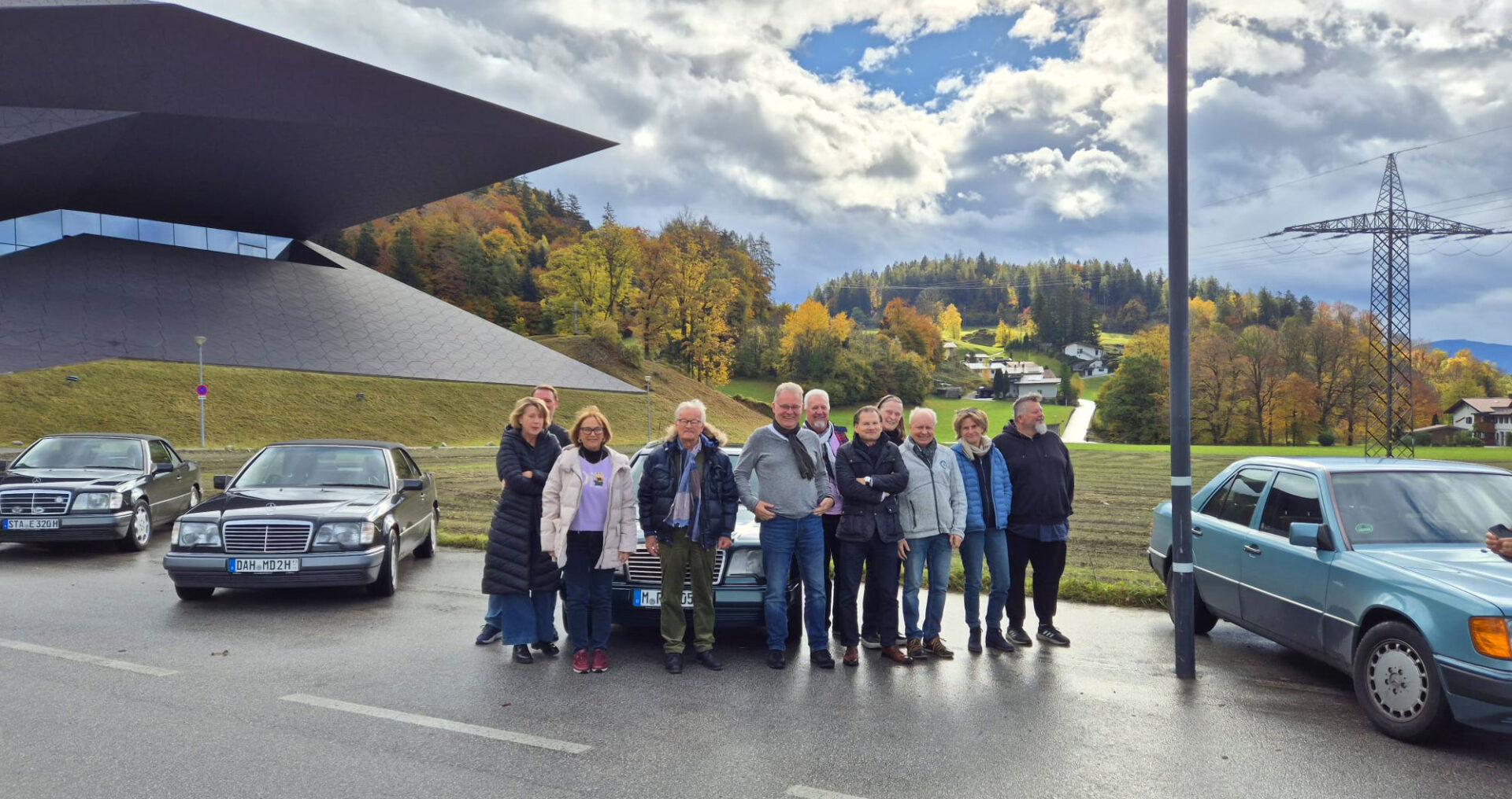 Ein kurzer Abstecher nach Tirol ließ uns staunen: Die moderne Architektur des Festspielhauses in Erl war nicht nur ein eindrucksvoller Hintergrund für den Fotostopp, sondern auch ein spannender Kontrast zur umliegenden Berglandschaft. Auf der Rückfahrt über Fischbachau zog es die Gruppe in das legendäre Café Winkelstüberl – bekannt für seine leckeren und vor allem riesigen Tortenstücke. Frei nach dem Motto: „Kuchenstücke unter 300 g sind Kekse“ musste niemand hungrig nach Hause fahren.