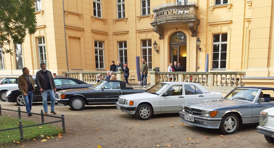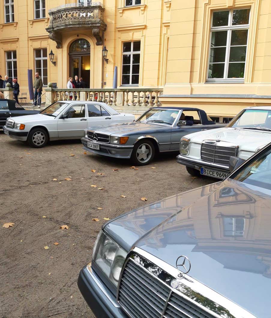 Im malerischen Innenhof des Schloßmuseum standen nun die 18 teilnehmenden Gäste zum Tag der Einheit in Reih und Glied. Gesehen wurden nicht nur R/C 107 SL sowie einige W 124er, sondern auch W 123 Coupé, W 126 Limousine und ein BabyBenz – warum auch nicht, schließlich ist ja Tag der Einheit !