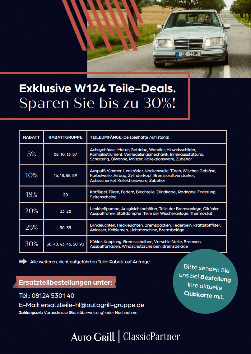 NEU: Rabatte und exklusive W 124 Teile-Deals für Clubmitglieder