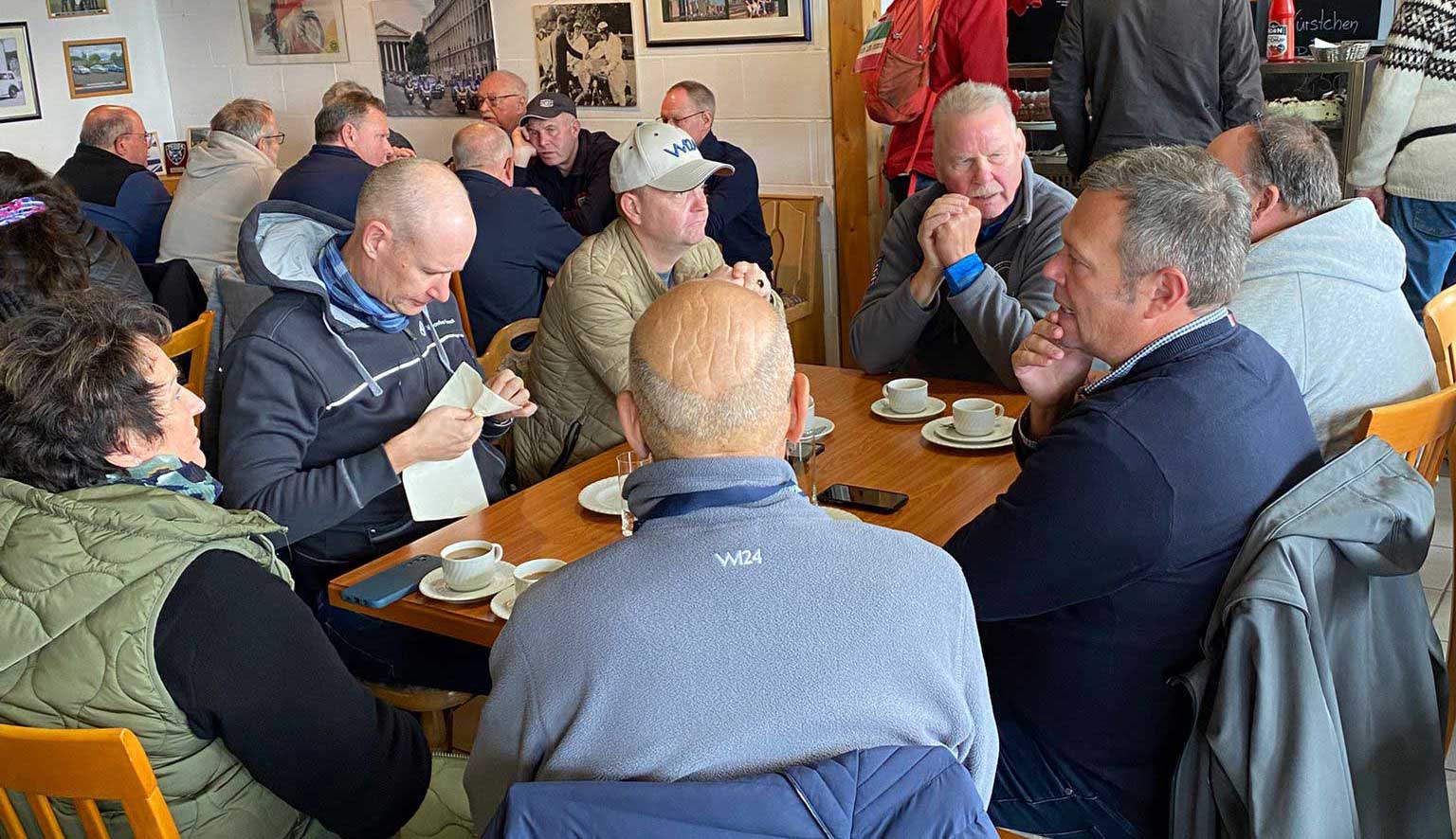 Wir trinken nach dem informationsreichen Tag noch einen Kaffee zusammen in der Kantine. Hier endet am Nachmittag für die meisten dann unsere Saisonabschlusstour. Ein perfekt organisiertes Wochenende von Nicole und Peter geht zu Ende. Vielen Dank noch einmal an die beiden Organisatoren.
