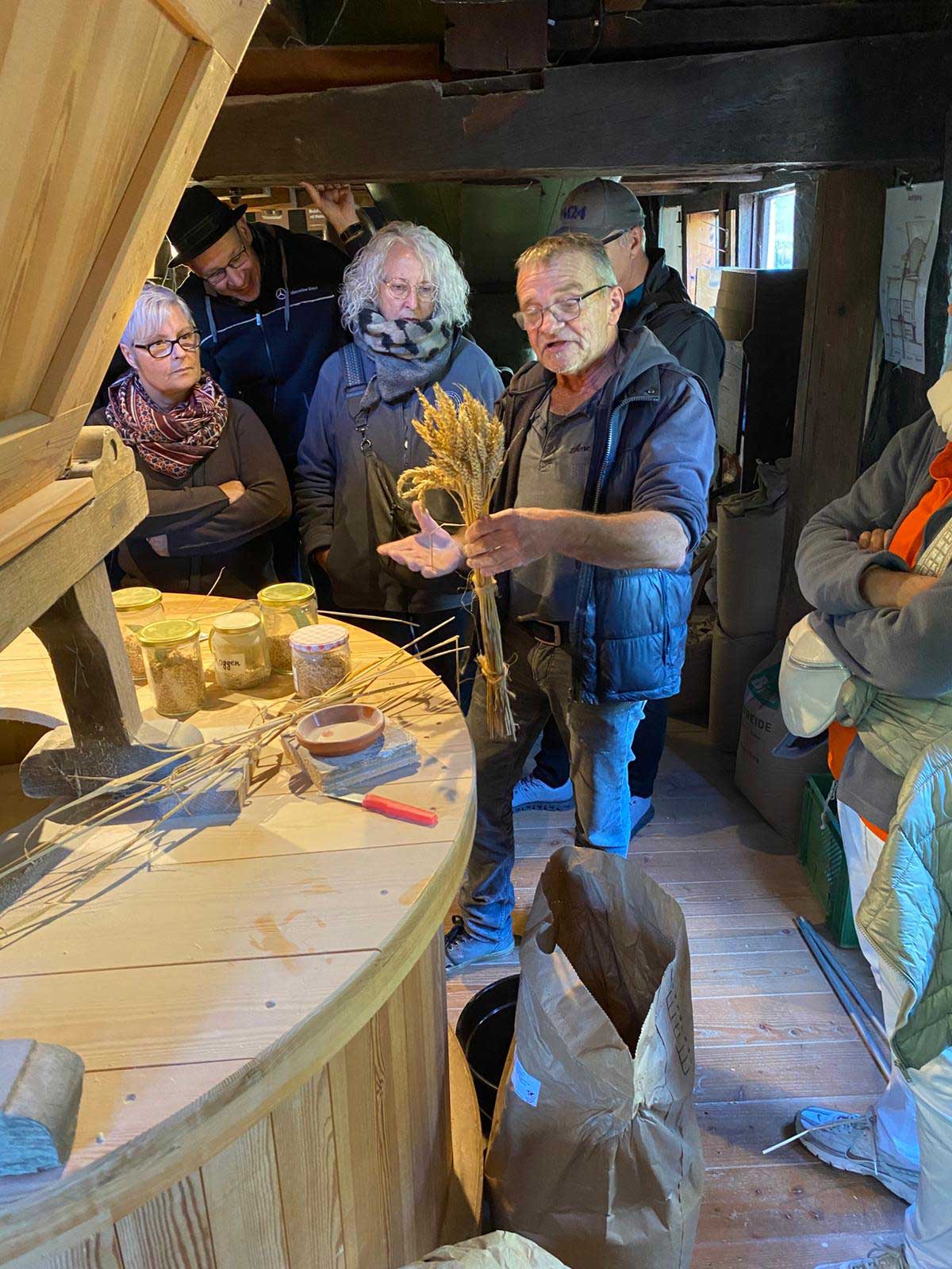 Der geführte Rundgang zeigt uns wieviel Arbeitsschritte und wie komplex das Mahlen von Getreide ist, um die unterschiedlichsten Mehlsorten zu produzieren. Die alte Technik funktioniert noch hervorragend. Am Ende der Besichtigung gibt es noch einen Kaffee im Mühlencafe.