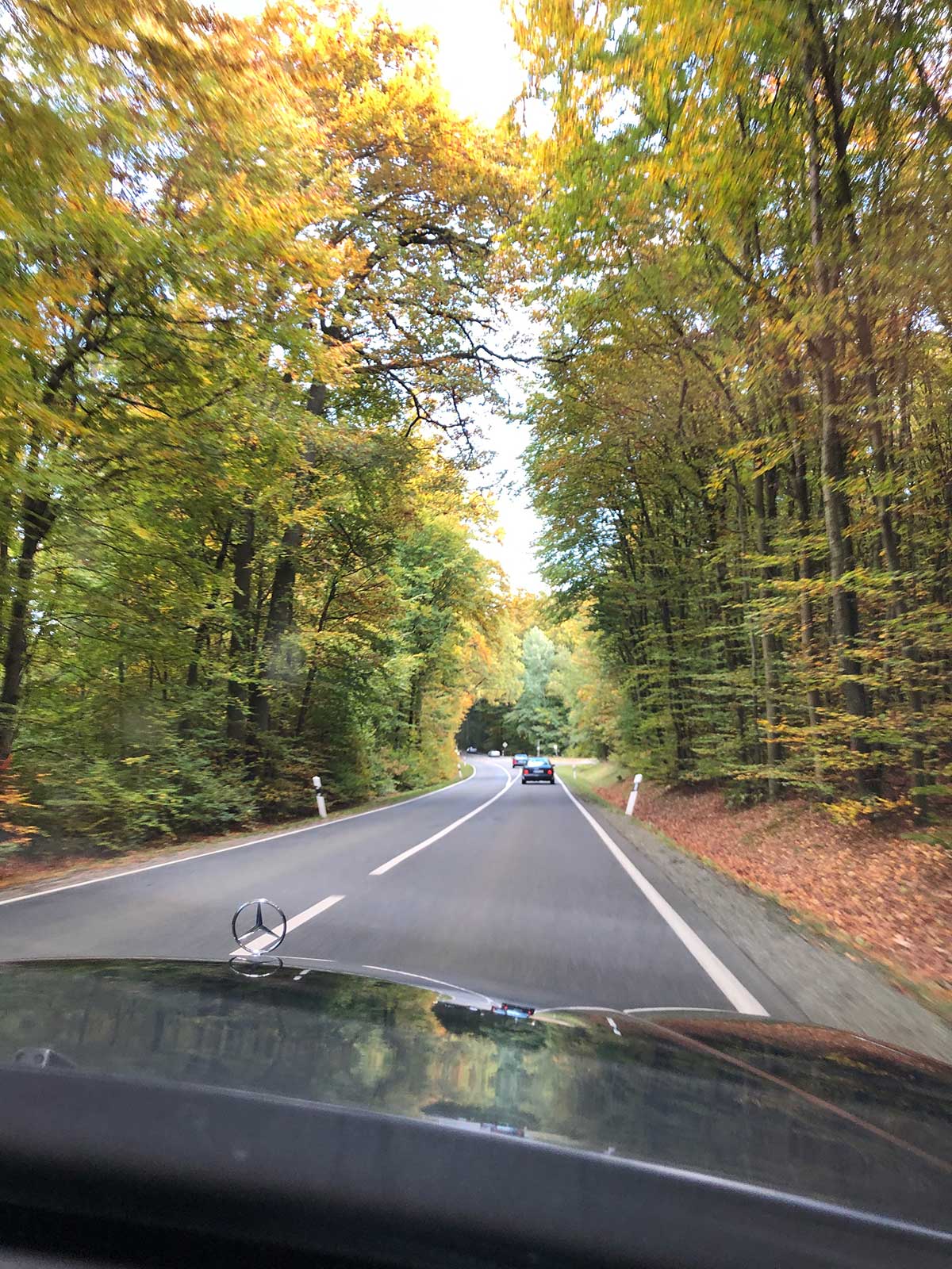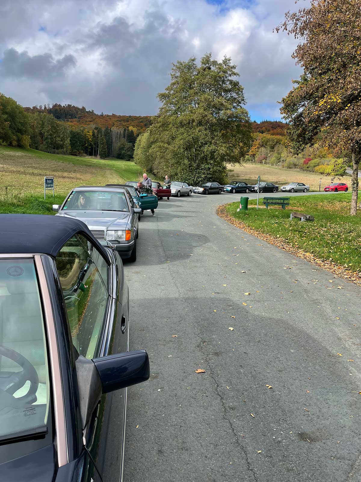 Unsere Tour startet in Amöneburg. Hier treffen wir uns bei Nicole und Peter Ried, unseren Organisatoren der wunderschönen Tour. Nach einem kleinen Imbiss gehen 14 Oldtimer auf die Straße. Es geht durch bunte Wälder und über schöne Landstraßen. Ein erster Stopp ist mittags am Aartal See.