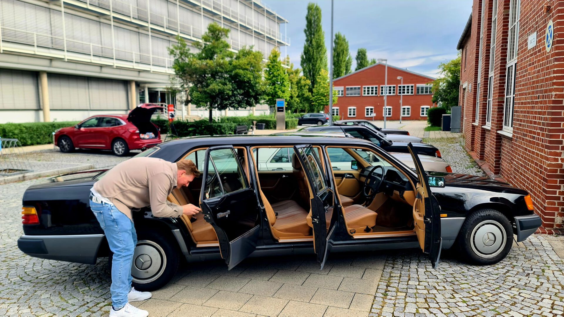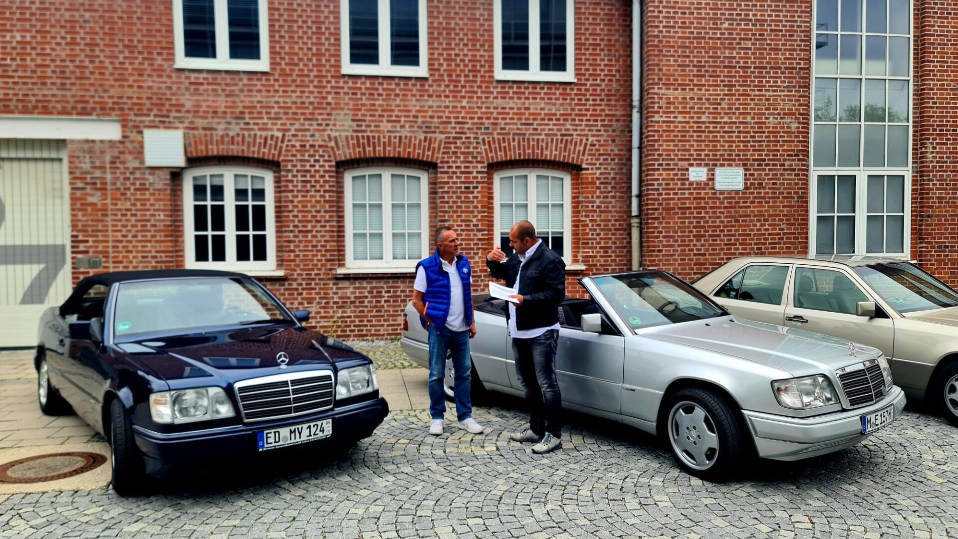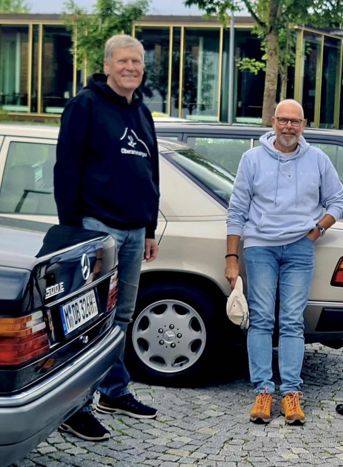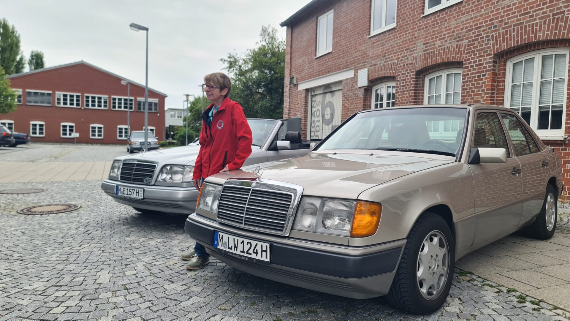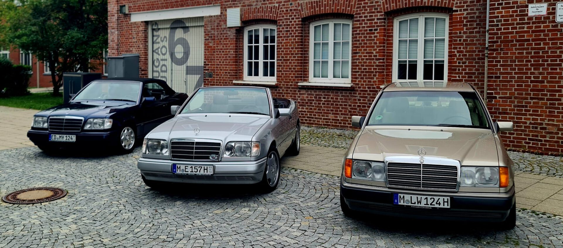 … fragte unsere Clubpräsidentin in die Runde der Bayern. Denn in München wurden kurzfristig einige 124er und ihre Fahrer gebraucht. Ein bekanntes Motormagazin hatte den W 124 im Fokus und wollte die leidenschaftlichen Fahrer vor die Kamera holen. Spontan trafen sich also am 23. August einige Clubmitglieder mit ihren frisch polierten Sternen auf dem Filmgelände ein und dann ging es auch schon los mit den Interviews.