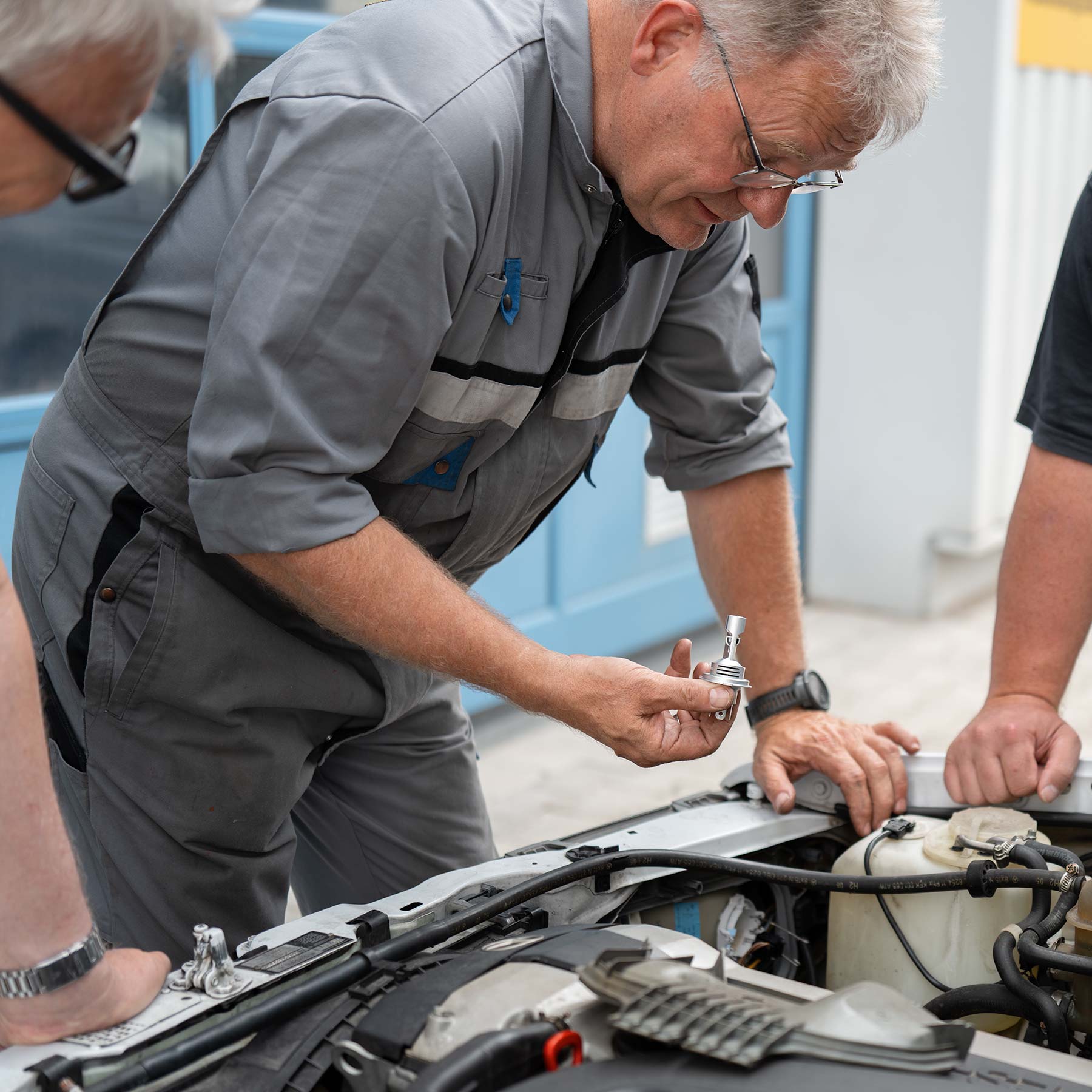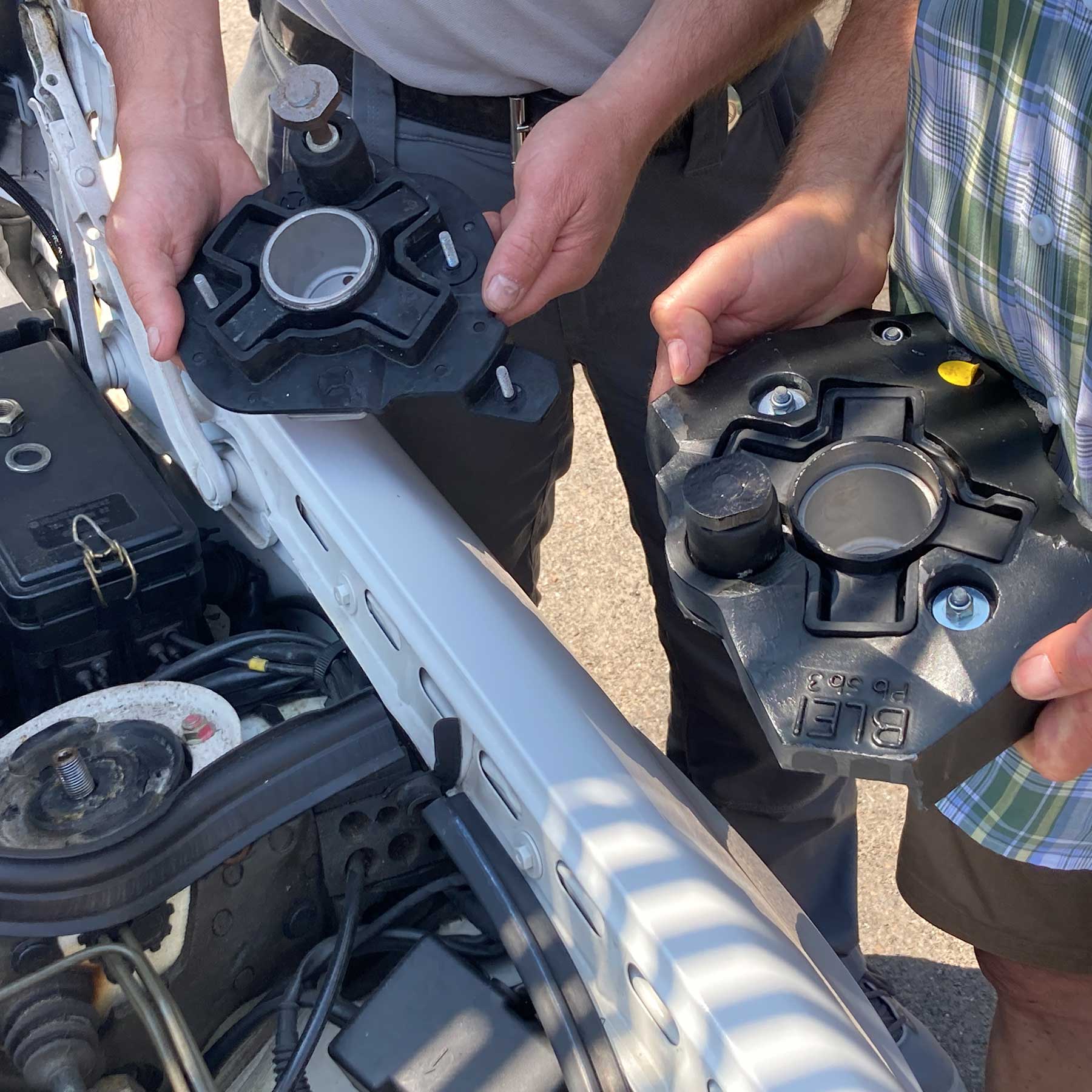 Unser Technik-Vorstand, Friedl Staab kümmert um die Bestellungen und die Fertigung der Schwingungstilger. Im Juni fand der Probeeinbau eines Prototypen des nachgefertigten Schwingungstilgers bei CARUS Parts in Visselhövede statt. Der Ausbau des alten als auch der Einbau des neuen Schwingungstilgers gelang ohne Schwierigkeiten. Insgesamt waren vier Muttern zu lösen und wieder festzuziehen: eine Zentralmutter am oberen Ende des Federbeins auf dem Dom und drei Muttern, die das wiederverwendbare Bleigewicht fixieren.