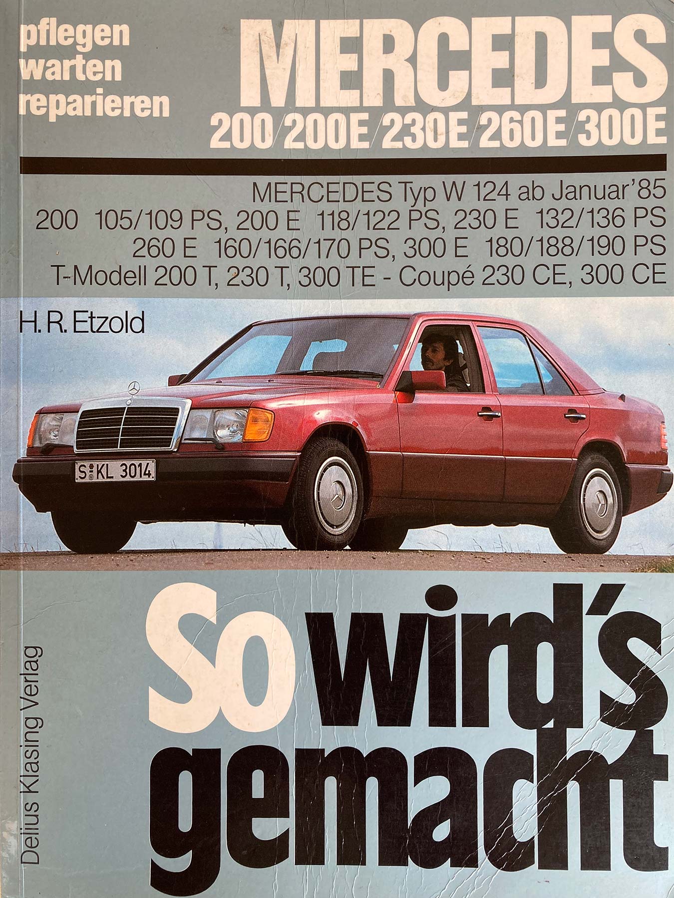 Im Laufe der Jahrzehnte sind einige Bücher über die Baureihe W 124 veröffentlicht worden. Viele beschäftigen sich mit der Reparatur und Instandhaltung unserer Serne. Die meisten sind nur noch gebraucht zu kaufen. Unsere Clubmitglieder haben ihre Bücherregale durchforstet und stellen einige Werke hier vor – auch solche, die schon lang vergriffen sind.